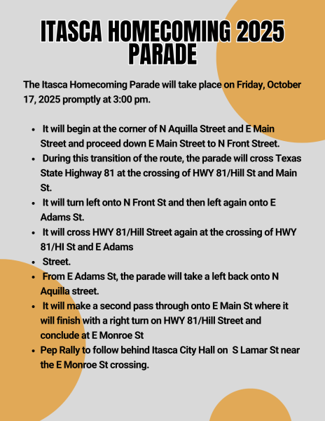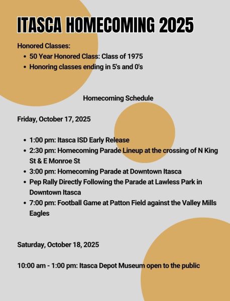 If you would like to help out with homecoming festivities please email: [email protected] or message Gabby Rivera-Mayberry on Facebook. We are looking to establish an Itasca Homecoming Committee.